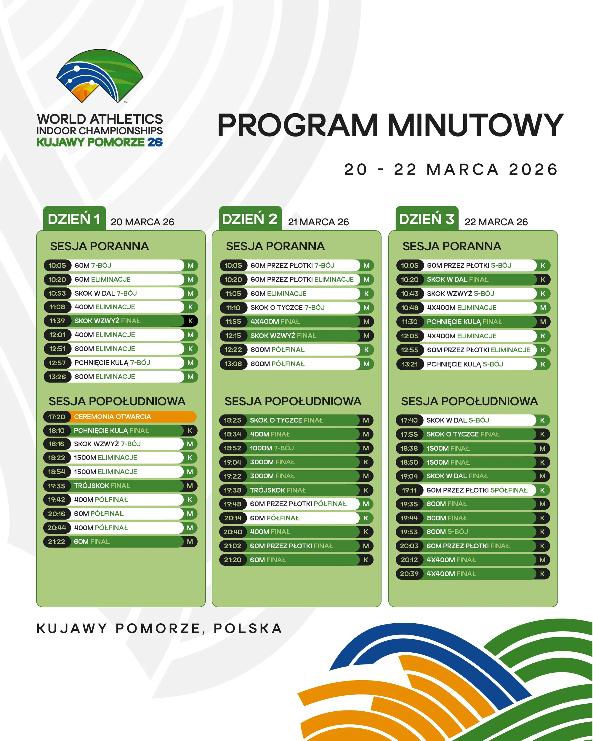 Już od 20 marca 2026 roku, w Kujawsko-Pomorskiej Arenie Toruń odbędą się Halowe Mistrzostwa Świata w lekkiej atletyce Kujawy Pomorze 26 – największe wydarzenie lekkoatletyczne w Polsce od ponad dekady.